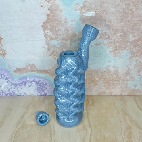 These ‘SINE’ bubblers were designed to take advantage of 3d printing to create geometries which break away from the simple and uncomplicated forms that you often find in other ceramic pipes. With perfect precision and a unique ‘layer’ optic through 3d printing technology, the triplebaked ceramics are not only pleasing to hold but creates an object that is truly stunning.