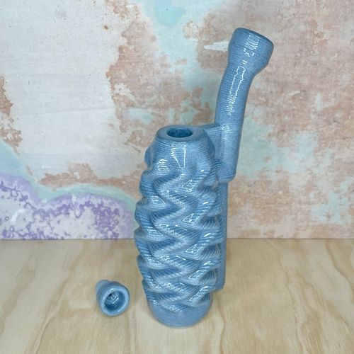 These ‘SINE’ bubblers were designed to take advantage of 3d printing to create geometries which break away from the simple and uncomplicated forms that you often find in other ceramic pipes. With perfect precision and a unique ‘layer’ optic through 3d printing technology, the triplebaked ceramics are not only pleasing to hold but creates an object that is truly stunning.